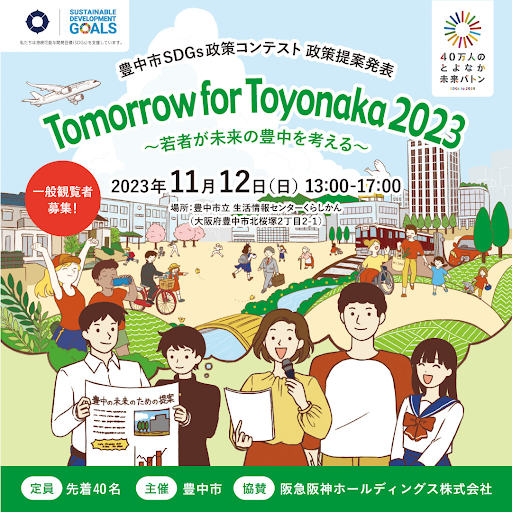 豊中市は、学生・社会人・子育て世代など若者たちがSDGsの視点で豊中の未来を考え、市政へ主体的に参画する意識を醸成することを目的に、「SDGs政策コンテスト」を開催します。